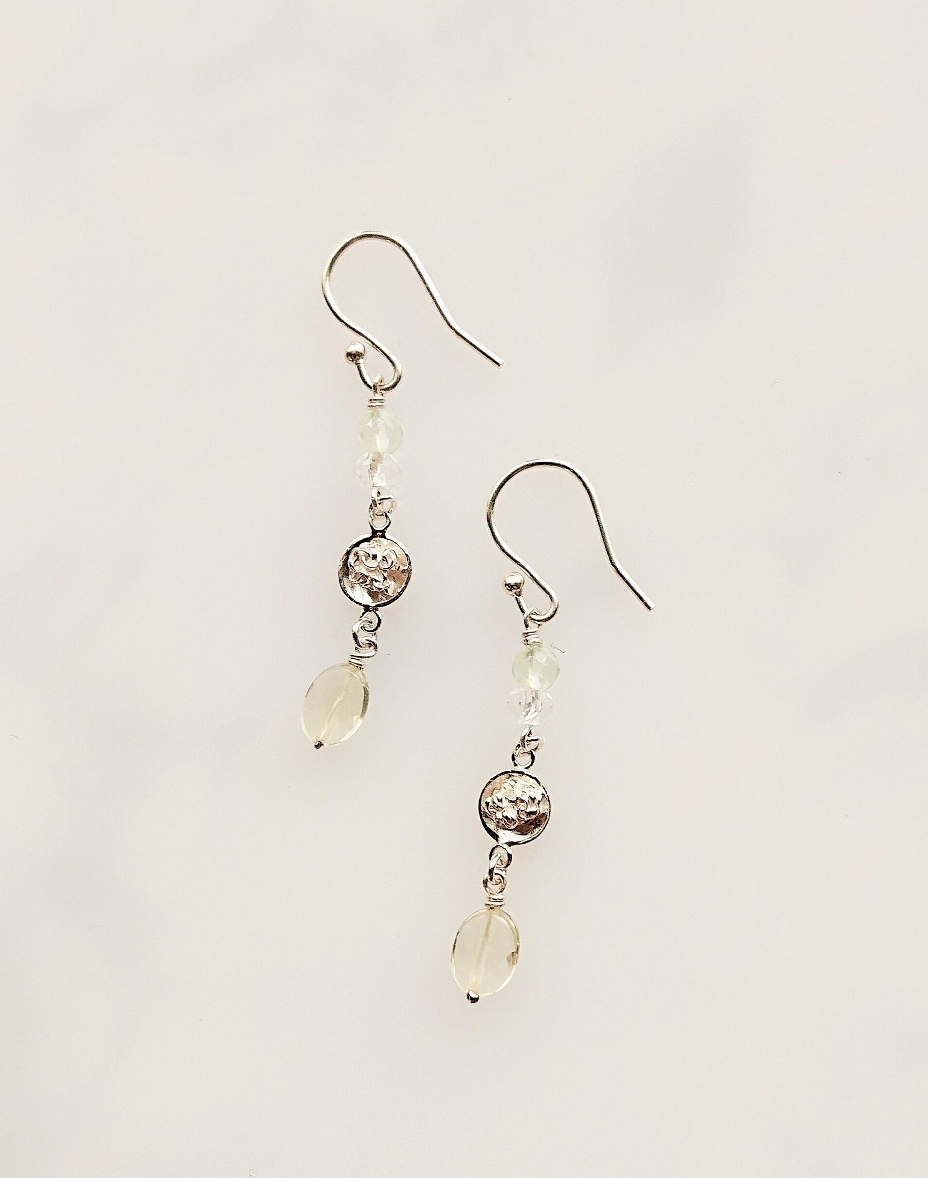 シルバー、レモンクオーツ、プレナイト、水晶のそれぞれ微妙な透明感のある淡い色彩が楽しめます。