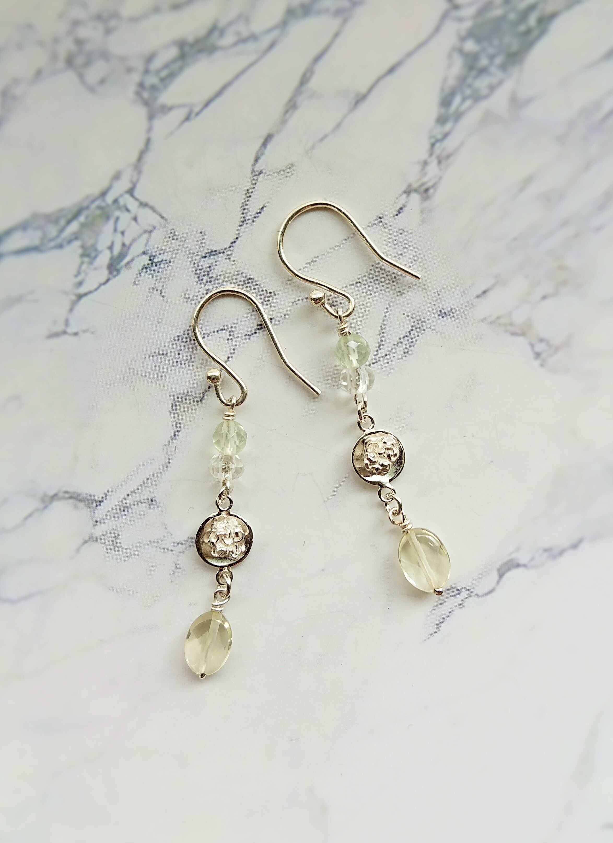 素材:シルバー925, 950 レモンクオーツ、プレナイト、水晶