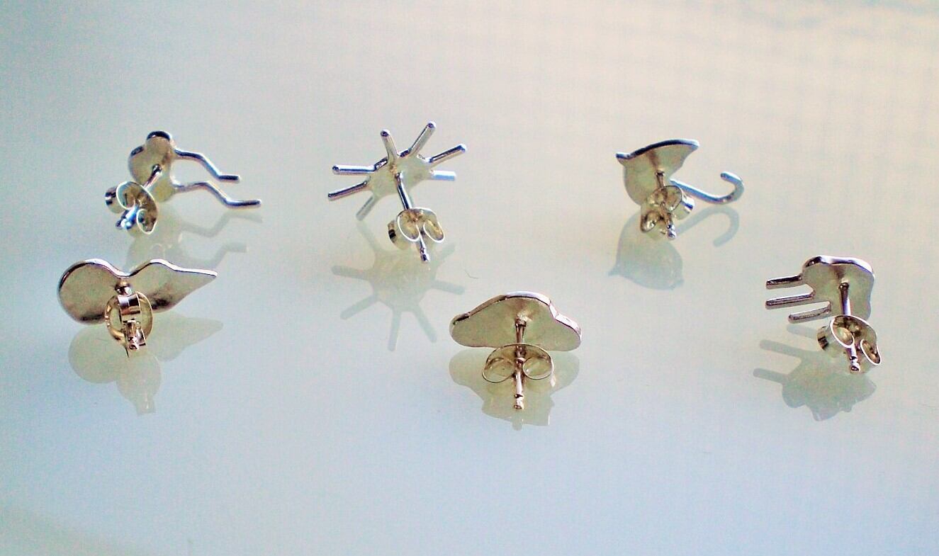 ”晴れ” ”曇り” ”雨” ”傘” ”雷” ”雪” マークの6種類の片耳ピアスです。